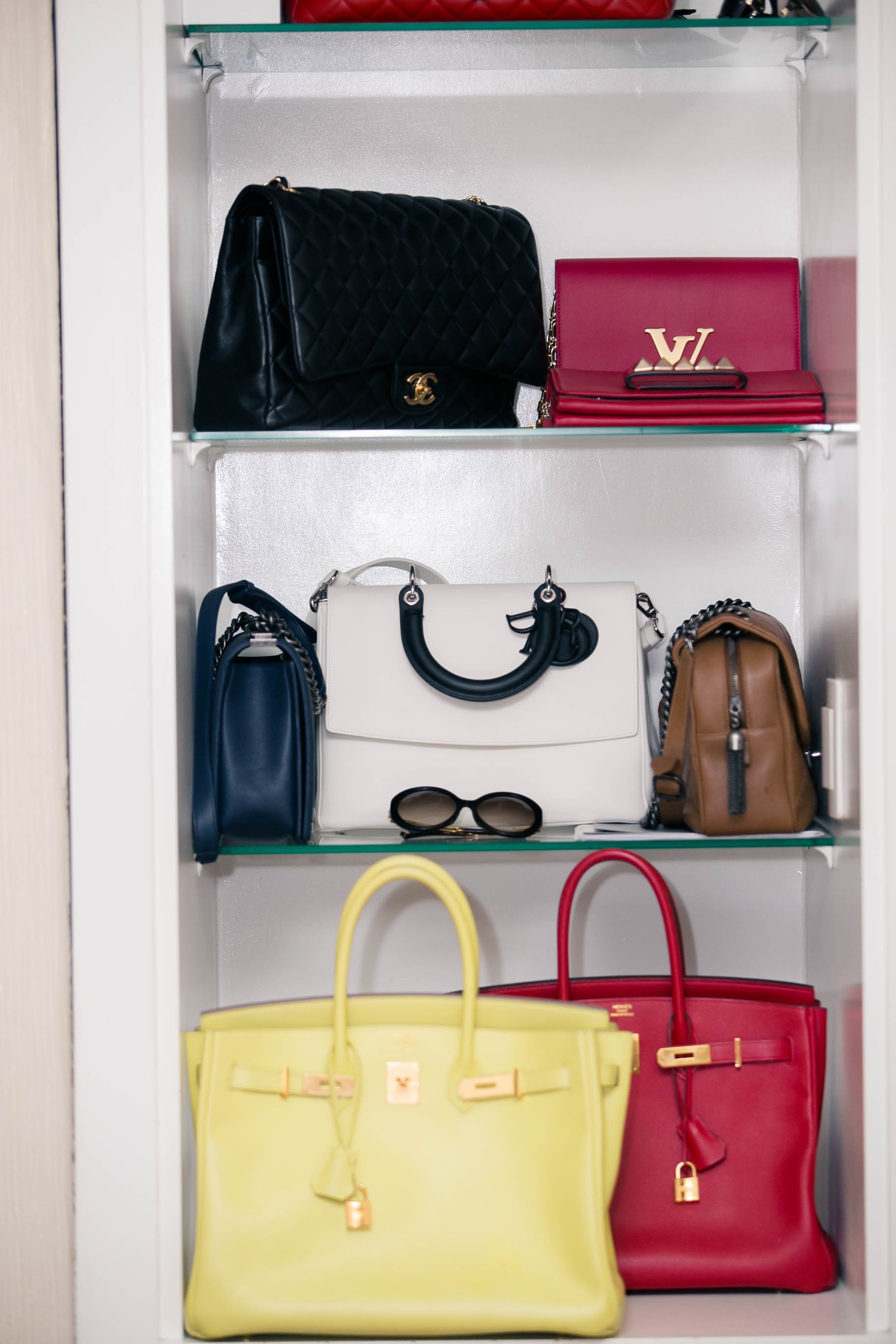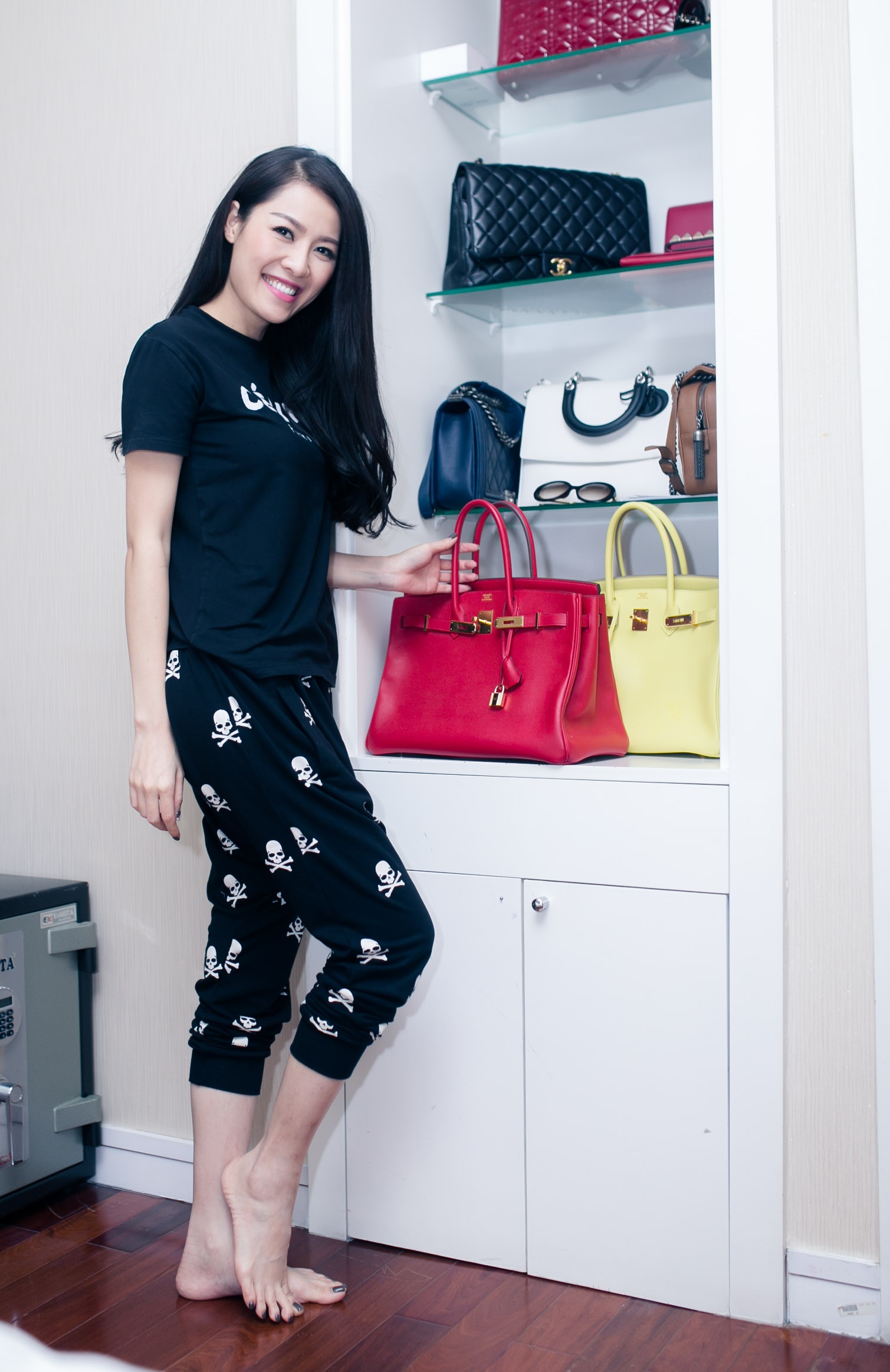 | Trên kệ tủ là những mẫu túi xách được cô thường xuyên sử dụng. BST túi hiệu của Quế Vân bao gồm nhiều màu sắc từ gam trung tính trắng đen cho đến nhiều màu bắt mắt. Người đẹp cho biết sự phong phú về sắc độ giúp cô linh động trong cách mix phụ kiện và trang phục. Những chiếc túi thuộc sở hữu của Quế Vân đều có giá cả đắt đỏ và được mua từ những chuyến công tác nước ngoài. |