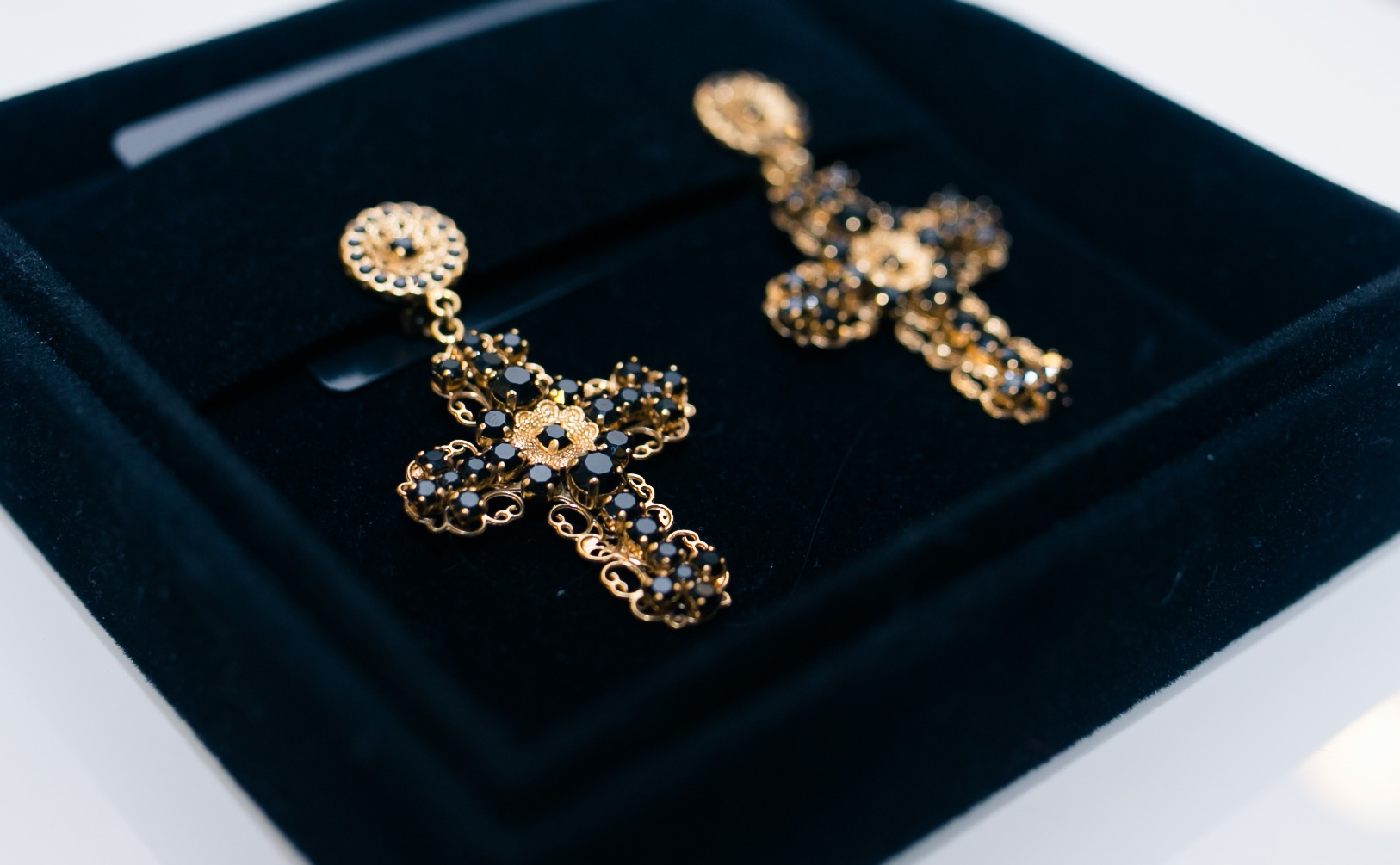 | Phụ kiện hoa tai thánh giá đính hạt là món thời trang được cô sử dụng khi tham sự các sự kiện sang trọng trong nước. |
