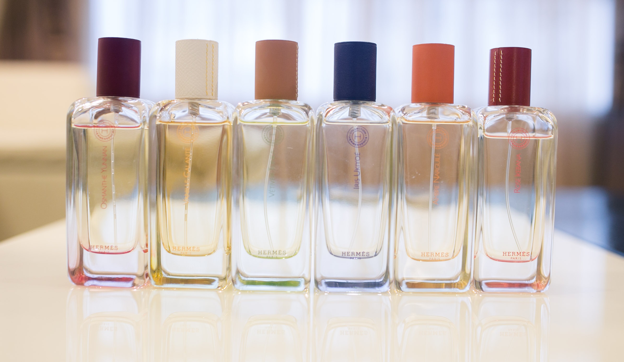 | Nước hoa nhiều mùi hương phù hợp cho từng thời điểm trong ngày, thời thiết hai miền được cô đặt ở một góc bàn riêng. |