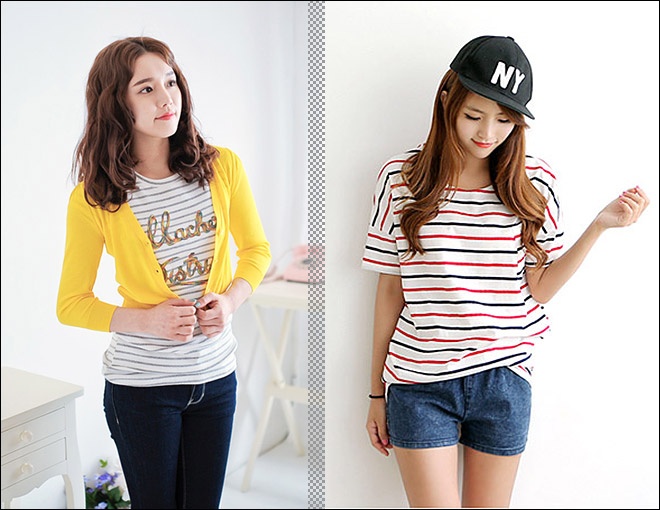 | Áo khoác lửng và áo T-shirt sọc ngang là 2 sản phẩm nằm trong top nên mua sắm trong bộ sưu tập lần này. |