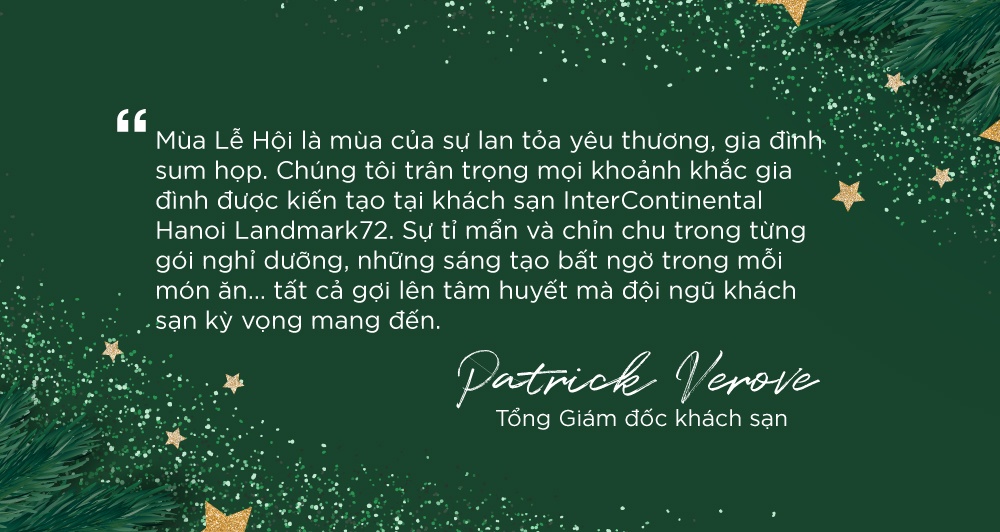 Tận hưởng một mùa lễ hội ấm áp cùng gia đình và bạn bè trong không gian lấp lánh, dịch vụ nghỉ dưỡng hạng sang và các hoạt động hấp dẫn tại InterContinental Hanoi Landmark72 - khách sạn 5 sao cao nhất thủ đô.