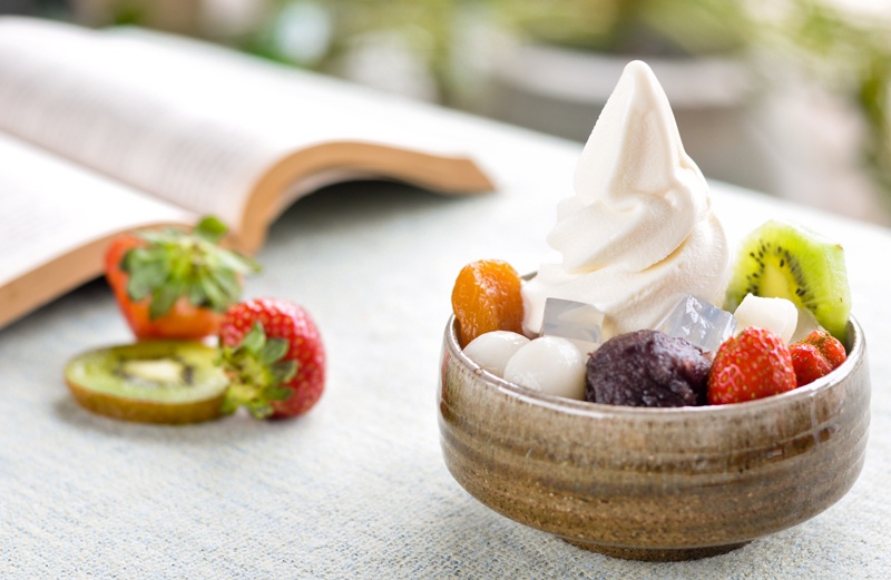 | Kem tươi Hokkaido cùng Kanten và trái cây. |