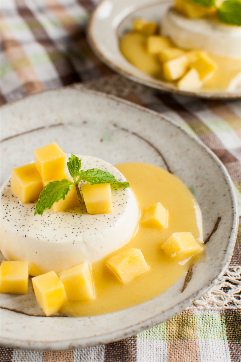 | Panna cotta với sốt xoài tươi. |