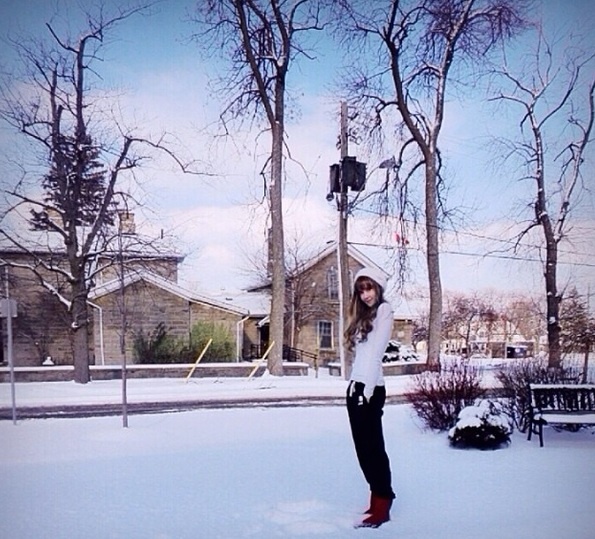 | Thì ngay hôm sau đã nhìn thấy cô diện quần áo mùa đông đến thăm ông bà tại Úc. |
