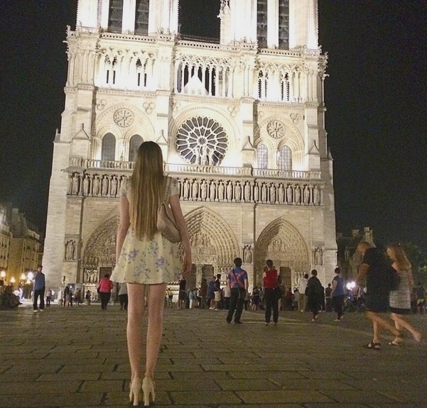 | Người ta vừa thấy 9X khoe dáng trước nhà thờ Đức Bà tại Pháp hôm trước. |