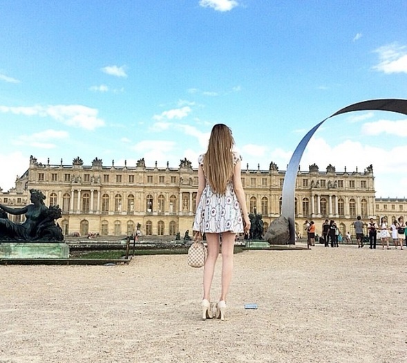 | Taylor R xuất hiện trước lâu đài Versailles nằm ở phía tây của thành phố Paris. |