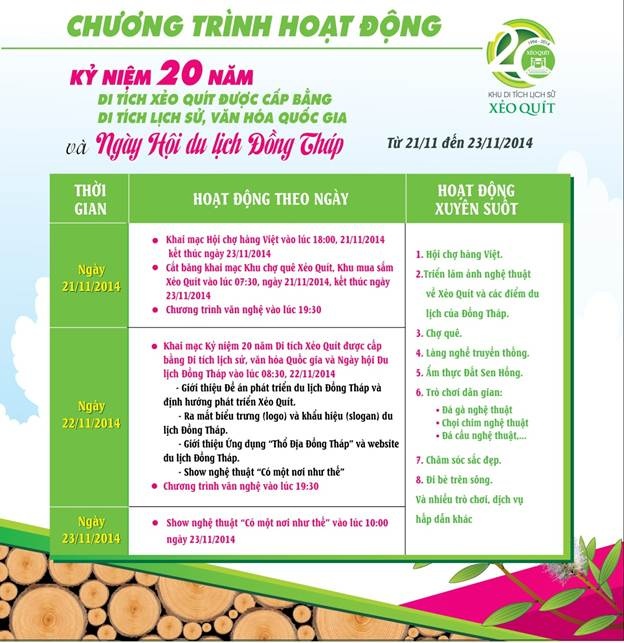 | Lịch hoạt động của Ngày hội du lịch Đồng Tháp - Nguồn: Say Cheese |