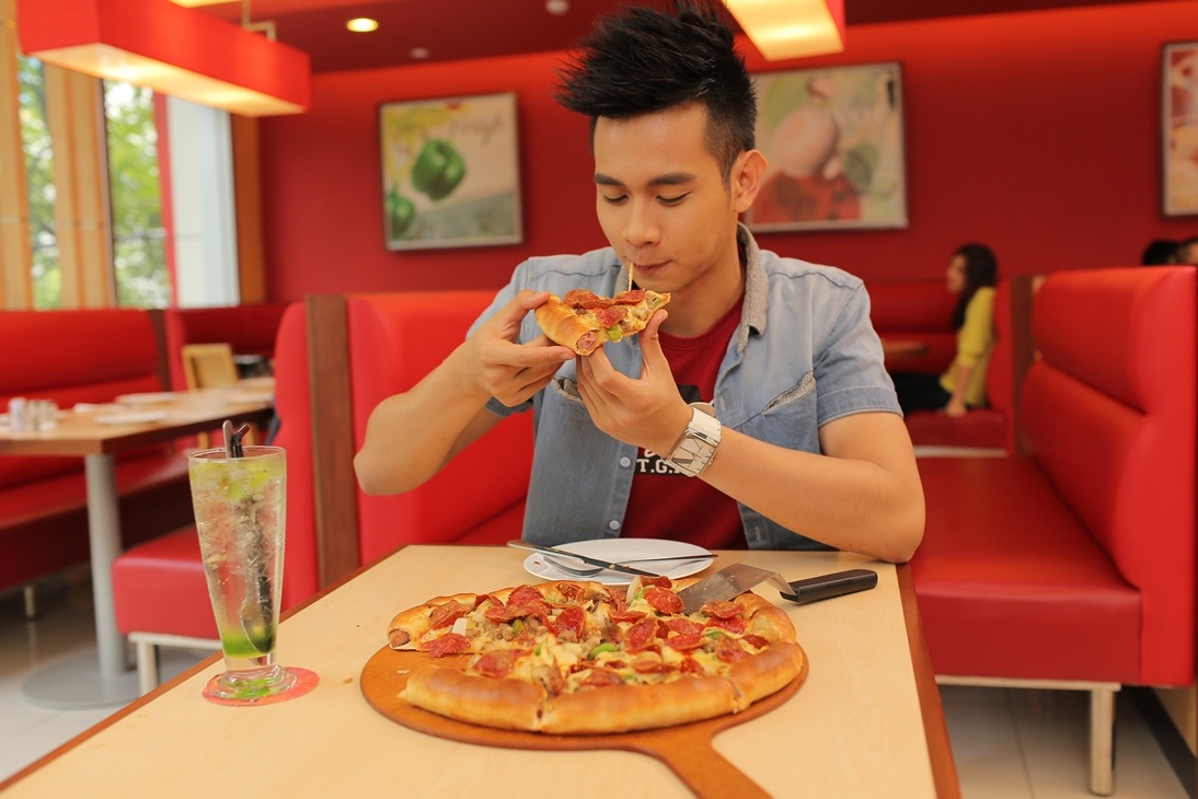 Không chỉ là đại diện thương hiệu của Pizza Hut, Hồ Vĩnh Khoa còn là khách ruột của thương hiệu Pizza nổi tiếng này không chỉ vì thực đơn mới có hơn 100 món ăn vừa bắt mắt vừa ngon miệng với mức giá chỉ từ 29.000 đồng mà còn vì ngày nào ghé đến Pizza Hut cũng đều được ưu đãi tối đa.