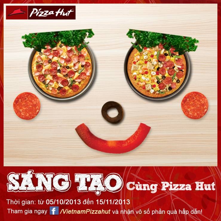 Chưa dừng ở đó, Pizza Hut đang tổ chức một cuộc thi rất thú vị mang tên “Sáng tạo cùng Pizza Hut”. Lấy cảm hứng từ những món ăn thơm ngon, độc đáo trong thực đơn mới, các bạn có thể tự do sáng tác tác phẩm của mình ở mọi thể loại, từ video clip đến hình ảnh,... Cuộc thi đã bắt đầu từ 7/10, hãy nhanh chân truy cập www.pizzahut.vn hoặc tại đây để cập nhật ngay những thông tin nóng cũng như tham gia sân chơi đầy sáng tạo này và nhận nhiều phần quà hấp dẫn.
