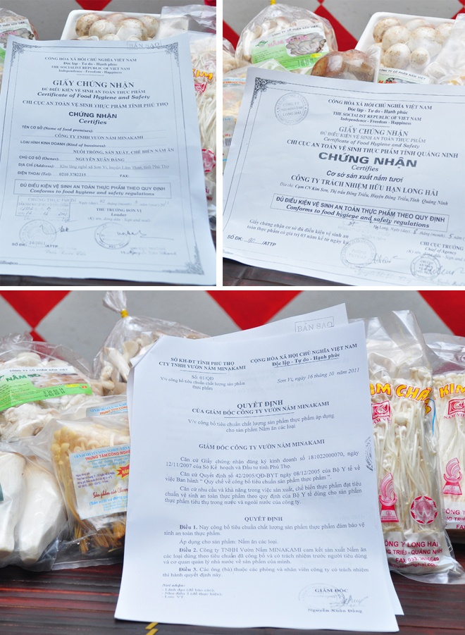 | Chứng nhận xuất xứ và chất lượng nấm của nhà hàng. |