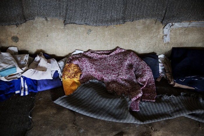 | Quần áo trẻ em bị bỏ lại trên ghế sofa trong một ngôi nhà trống rỗng. |