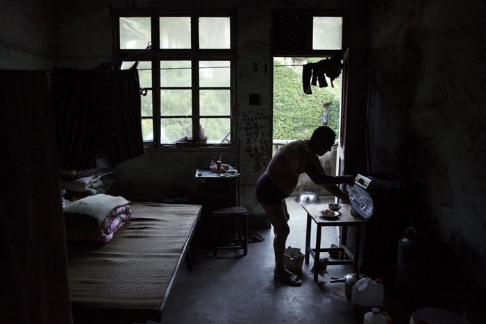 | Sun Ayue, một trong số ít các cư dân còn lại của Houtouwan, chuẩn bị bữa tối trong căn phòng nơi ông sống. Người đàn ông 59 tuổi này từng là một ngư dân. |