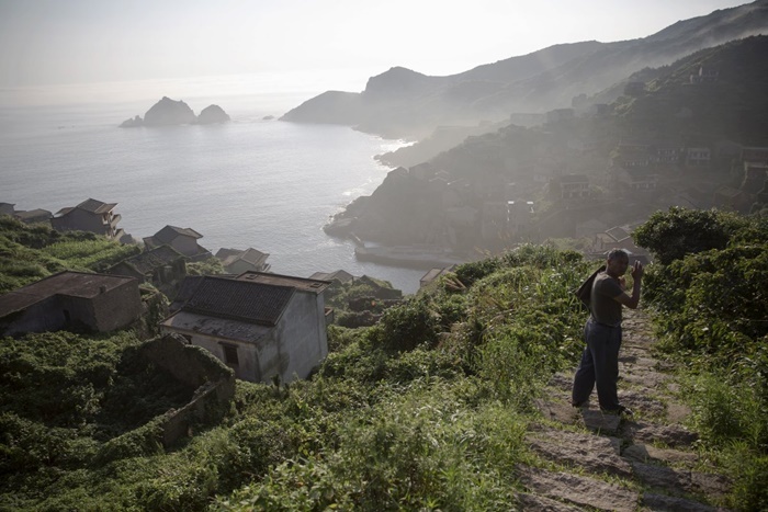 | Hơn 50 năm trước đây, khoảng 2.000 người dân gọi Houtouwan là nhà. Nhưng hiện tại, ngôi làng bị bỏ hoang, chỉ còn rất ít cư dân dám ở lại. Trong ảnh là một cư dân cũ của làng hành nghề hướng dẫn viên du lịch. |