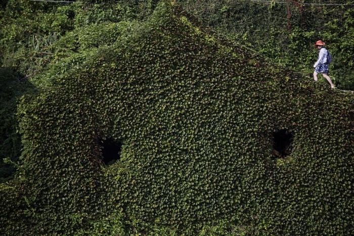 | Mỗi năm trôi qua, dây leo lại mọc bao phủ thêm các ngôi nhà như ‘nuốt chửng’ chúng trong sắc xanh tươi tốt. |