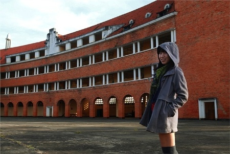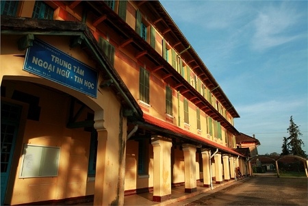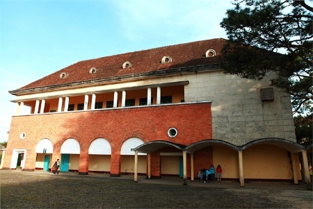| Với dãy lớp học được xây hình vòng cung, gạch xây trường là gạch trần đỏ được chở từ châu Âu sang. |