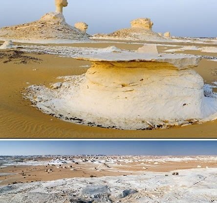 | Sa mạc Farafara (Ai Cập): Điểm thu hút chính của Farafra đó là Sa mạc Trắng (còn được biết đến với cái tên "sahara el Beyda, trong đó 'sahara' có nghĩ là một sa mạc). Sa mạc Trắng của Ai Cập nằm cách Farafra 45 km về phía bắc. Sa mạc có màu trắng, kem và sự hình thành những hòn đá phấn khổng lồ, thỉnh thoảng tạo nên những cơn bão cát trong khu vự. |