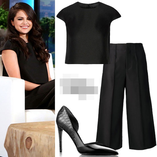 | Selena Gomez xuất hiện tươi tắn tại chương trình "The Ellen DeGeneres Show". Cô cũng mặc bộ đồ của hiệu CO. Giá trị bộ đồ này là 1.400 USD (khoảng 31 triệu đồng). |