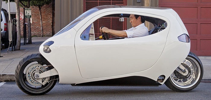 | Sở hữu kết cấu kiểu xe máy với 2 bánh nhưng LIT Motors C1 lại có bộ khung vỏ và được điều khiển bằng vô lăng giống ô tô. |