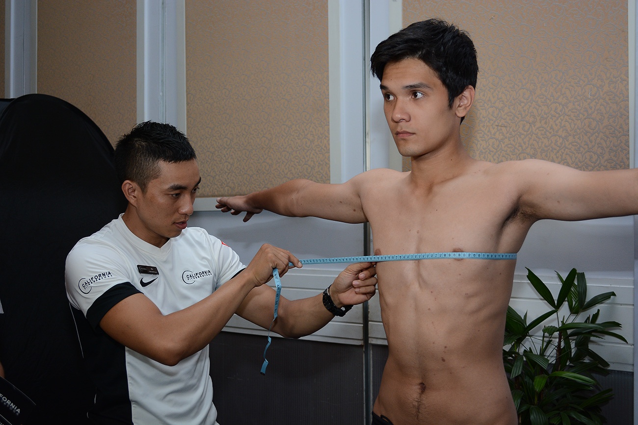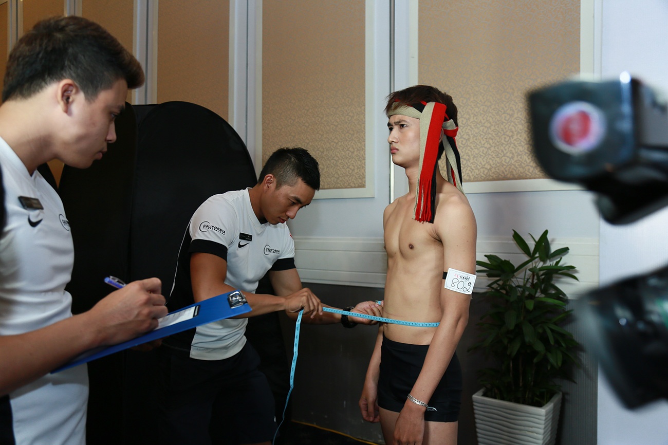 | Các thí sinh được đo đạc kỹ lưỡng và hầu như ai cũng bị giảm vài cm so với thông số đo bình thường bên ngoài. |