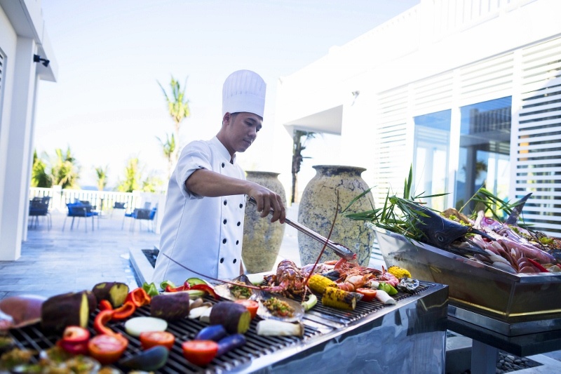 Nhà hàng Cá Chuồn Cồ giới thiệu những món ăn Việt và Âu được chính tay nghệ nhân ẩm thực Ánh Tuyết chế biến. Nhà hàng Lemon Grass có không gian rộng lớn giao hòa cùng thiên nhiên. Nếu muốn một không gian ấm cúng như ở nhà, chuyên gia đầu bếp của khu nghỉ dưỡng sẵn lòng phục vụ các buổi tiệc hải sản nướng sang trọng ngay tại biệt thự. Hay muốn một không gian mở độc đáo và tầm nhìn ra bãi biển, bạn có thể thưởng thức một ly cocktails nồng đượm hương vị nhiệt đới tại Nautica beach club với bánh mì, pizza, gà nướng thượng hạng.