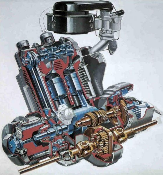| Động cơ xi-lanh đôi song song hoặc nằm dọc. |