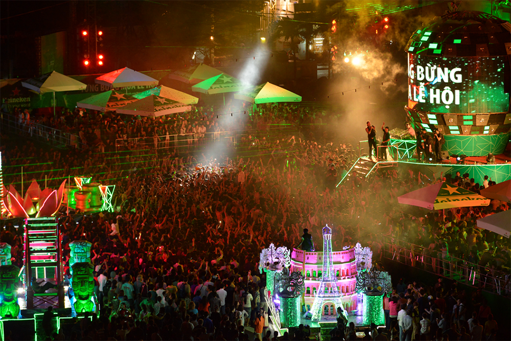 Không gian đêm lễ hội sẽ thực sự bùng nổ khi người hâm mộ cháy hết mình vào khoảnh khắc “Năm châu hội tụ” trong âm nhạc đẳng cấp của các nghệ syĩ quốc tế, kết hợp cùng nghệ thuật ánh sáng đỉnh cao. Đặc biệt, đây là lần đầu tiên, năm mươi (50) bạn trẻ Đà Nẵng có cơ hội được tham gia các đoàn xe trình diễn lễ hội trong những trang phục lộng lẫy được thiết kế riêng vô cùng tinh tế.