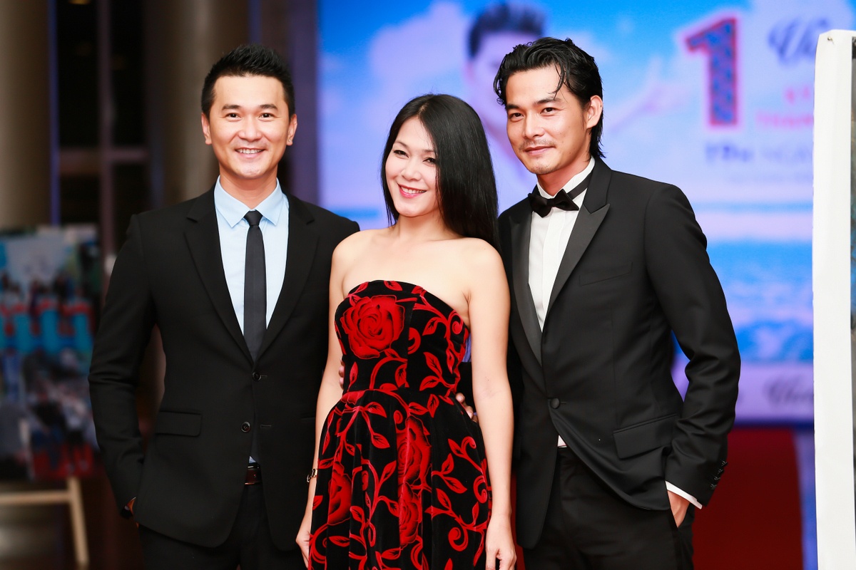 | Các diễn viên chính trong phim Hiệp sĩ mù gồm Quốc Cường, Đinh Y Nhung và Quách Ngọc Ngoan bay ra Hà Nội để ủng hộ Đàm Vĩnh Hưng. |