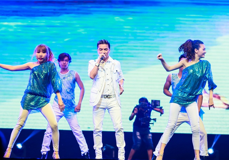 | Trong một số tiết mục như Con yêu, Khoảng cách, Xuân yêu thương… Đàm Vĩnh Hưng còn được sự hỗ trợ của nhóm vũ công nhí ABC kids – những học viên đến từ trung tâm đào tạo tài năng trẻ do anh mới sáng lập cách đây không lâu. |