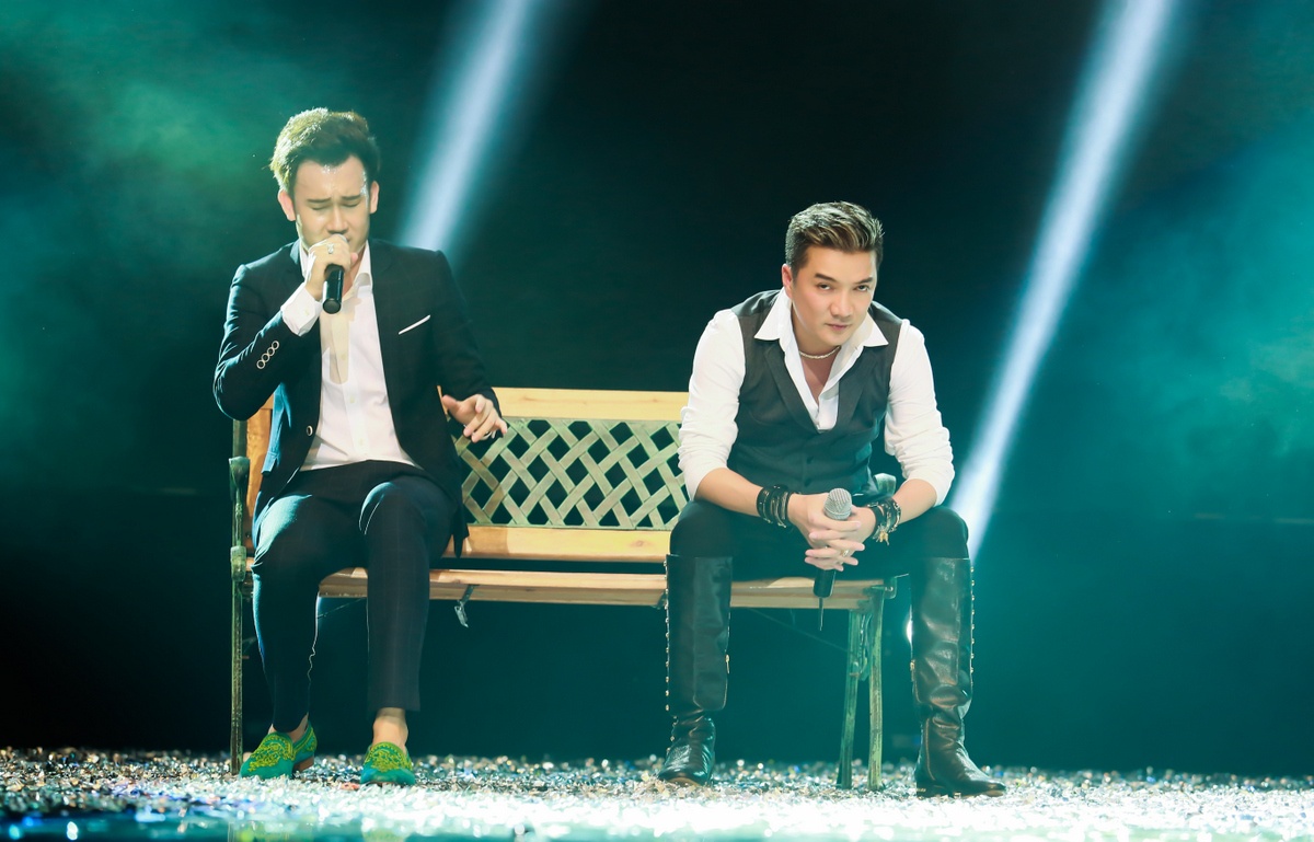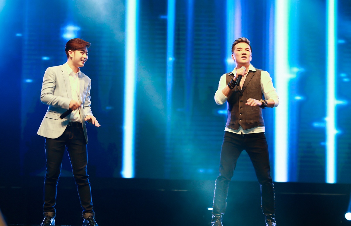 | Dương Triệu Vũ tái ngộ Đàm Vĩnh Hưng trên sân khấu. |
