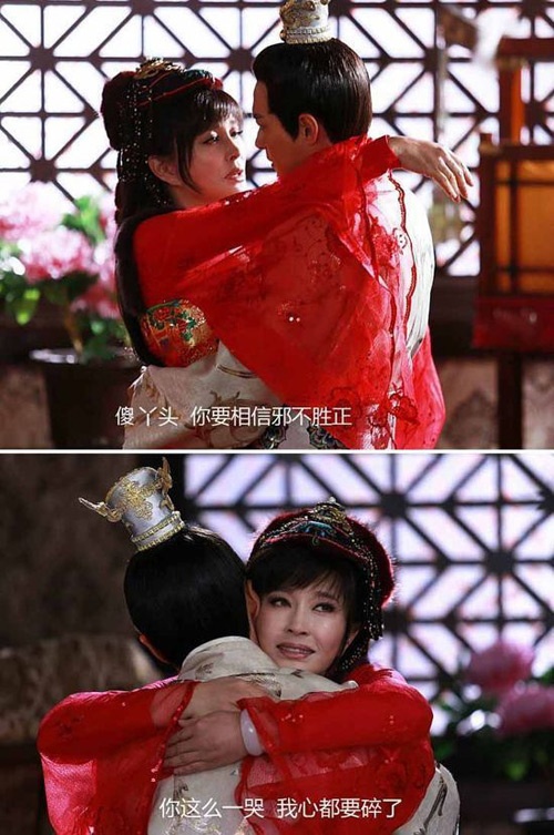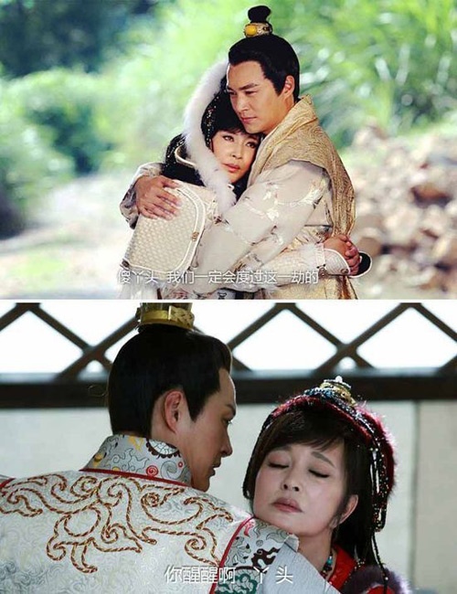 Trong phim, hai người không những có cử chỉ thân mật mà lời thoại rất "sến" khi Lý Thế Dân âu yếu gọi Minh phi (Lưu Hiểu Khánh đóng) là "A đầu khờ", "A đầu của trẫm" và liên tục lặp đi lặp lại cách gọi này khiến người xem nổi da gà. Bởi tuy được hóa trang trẻ hơn rất nhiều nhưng Lưu Hiểu Khánh vẫn không thể xóa được "vết tích thời gian" trên gương mặt.