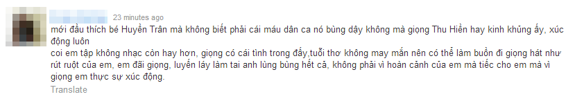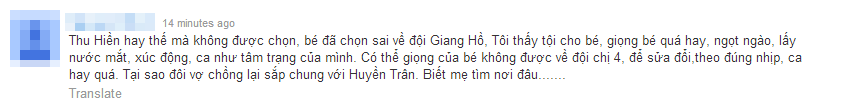 Tương tự với Lam Trường là trường hợp của cô bé Thu Hiền thuộc team Giang Hồ. Không được huấn luyện viên xướng tên sau phần thi Đối đầu với Huyền Trân và Khánh Huế trong Liên khúc Ca dao mẹ, nhưng cô bé có gia cảnh nghèo khó đến từ Củ Chi cũng nhận được nhiều tình cảm của khán giả. Được giao thể hiện ca khúc Tình mẹ, chính giọng hát chất chứa nỗi niềm và sự rung động xuất phát từ chính cuộc sống thiếu vắng tình thương yêu của ba lẫn điều kiện vật chất đã giúp Thu Hiền truyền tải trọn vẹn được ý nghĩa của sáng tác này.