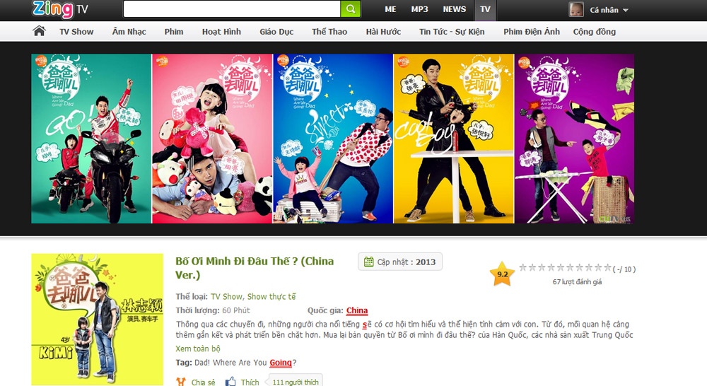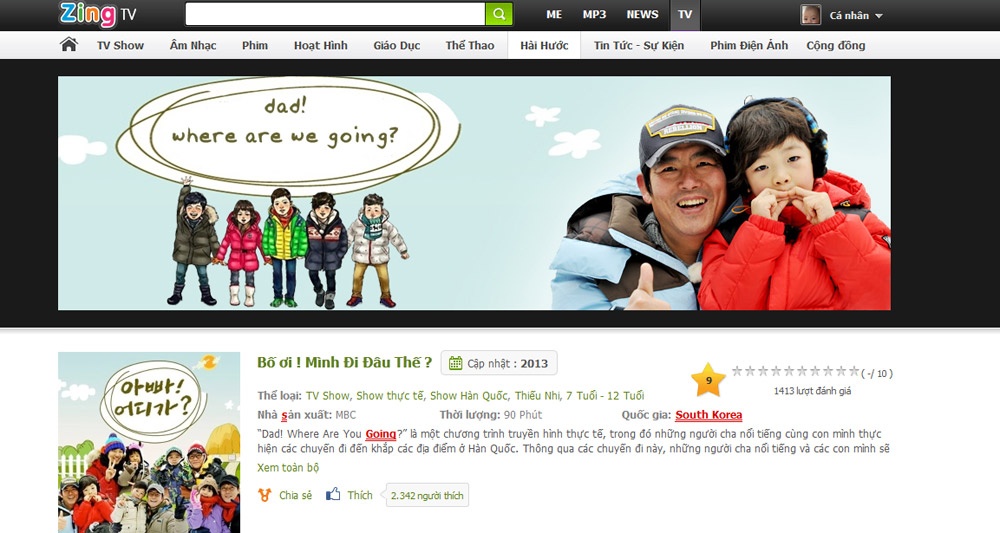 Đứng vị trí thứ 7 và 8 lần lượt là Bố ơi! Mình đi đâu thế? (phiên bản Hàn Quốc) và người em mới sinh của mình Bố ơi! Mình đi đâu thế? (phiên bản Trung Quốc) với cùng chung một format: các ông bố dẫn con đi dã ngoại trong 72 tiếng. Trong xã hội bận rộn ngày nay các bậc phụ huynh thường ít có thời gian quan tâm, chơi đùa với con cái, chương trình này giúp các bậc phụ huynh có dịp để tự nhìn lại mình, đồng thời học hỏi thêm nhiều mánh dỗ con rất độc của các ông bố. Đối với những cư dân mạng chưa làm cha mẹ thì chương trình lại thu hút vì sự cute chịu-không-nổi của các bé. Có vẻ xu hướng mới của TV show là trẻ em, khi mà các show trẻ em như Giọng hát Việt nhí và Bố ơi! Mình đi đâu thế? luôn ở vị trí nổi bật trên BXH. Sự đáng yêu, hồn nhiên của các bé như một làn gió mới đối với những khán giả đã quá mệt mỏi với những scandal và kịch tính ở show “người lớn”.