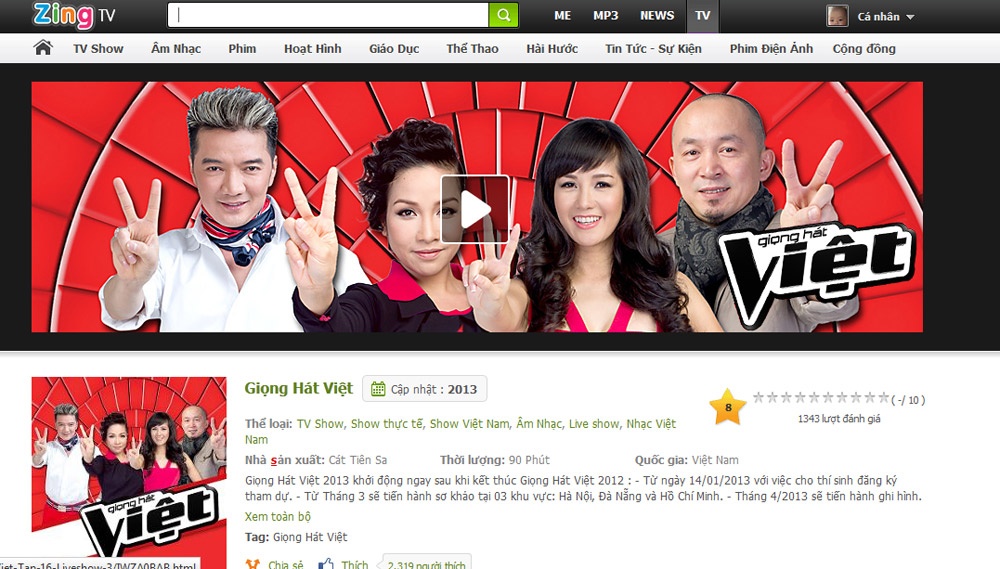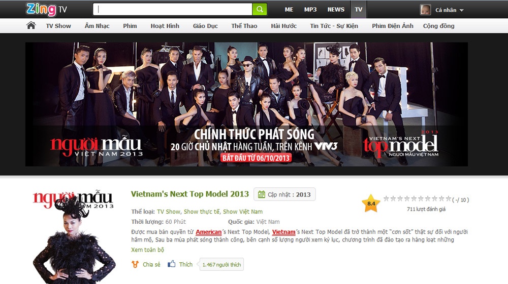 Vietnam's Next Top Model 2013 lần thứ 2 dẫn đầu BXH Tv Show. |