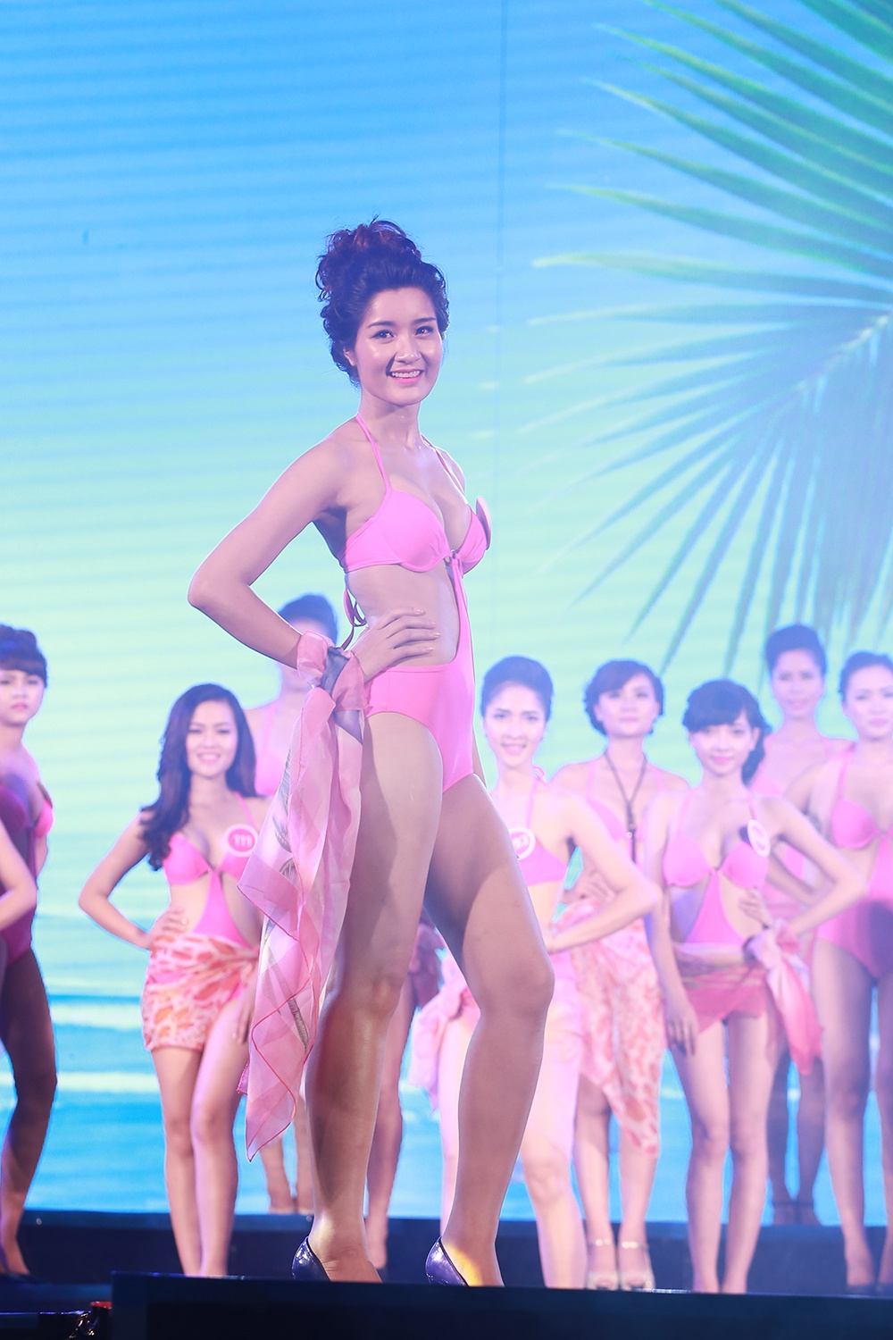 | Cùng lọt vào Top 5 người đẹp còn có Vũ Hồng Nhung, cao 1,68m, số đo ba vòng 83-64-90 và Nguyễn Linh Phương, cao 1,69m số đo 3 vòng 83-65-90. |