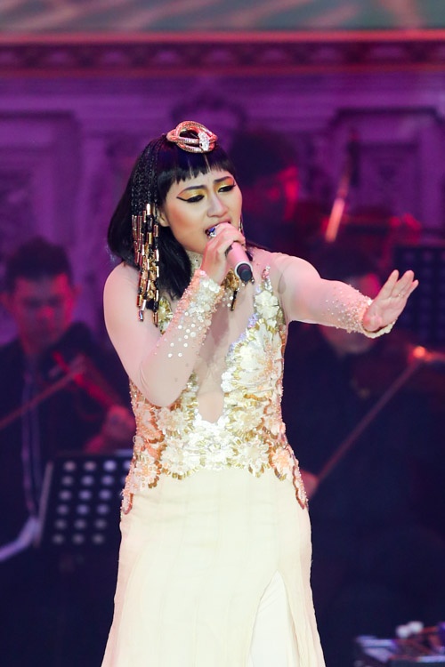 Khánh Linh có trải nghiệm khá thú vị khi hóa thân thành nữ hoàng Ai Cập trong ca khúc Dust in the wind – Hạt bụi trong gió. Không phải là nữ hoàng quyền uy, lộng lẫy như trong huyền thoại, nhân vật của Khánh Linh độc thoại về sự mong manh của kiếp người, triết lý của hư vô, cát bụi. Tận dụng sở trường giọng gió, giọng ca Giấc mơ trưa gần như chinh phục hoàn toàn ban giám khảo lẫn khán giả. Phần trình diễn của cô nhận được 39,5 điểm. |