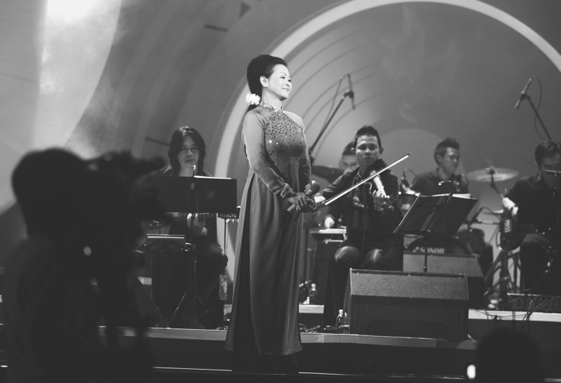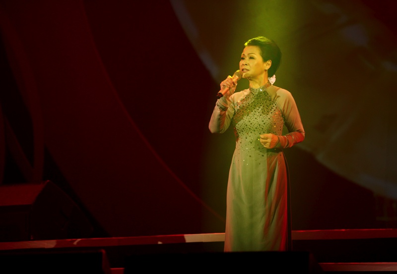 | Khánh Ly trên sân khấu Hà Nội, tối 9/5. |