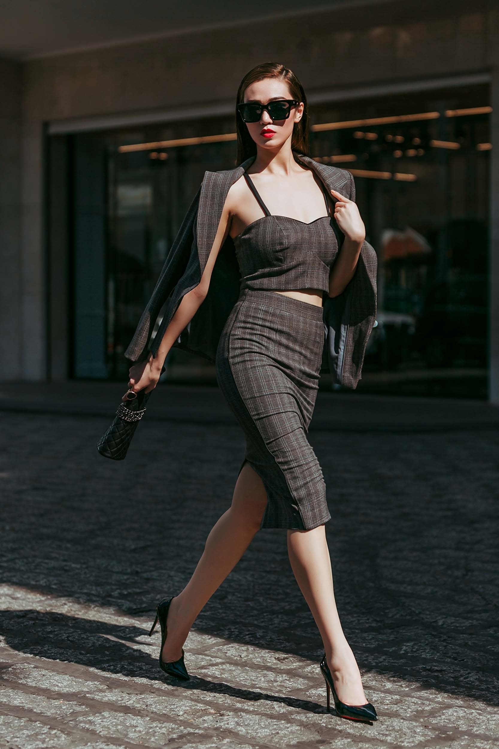 | Thời gian qua, Khánh My liên tục thay đổi hình ảnh với những shoot hình thời trang chỉn chu. Bộ ảnh mới giới thiệu style quyến rũ với những set đồ gam trầm hoài cổ. Chân váy bút chì, áo crop top luôn là công thức tuyệt vời tôn ba vòng hoàn hảo cho phái nữ. |