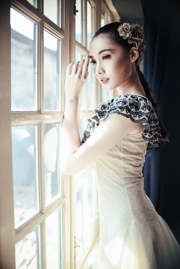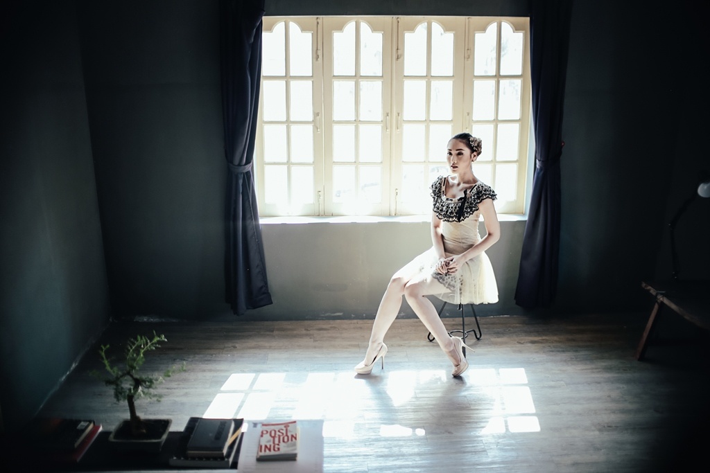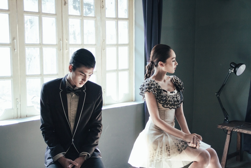 | Trong bộ ảnh nhân dịp Valentine của Khánh Ngọc và Quang Đại, chi tiết ánh nắng xuyên qua ô cửa sổ chính là điểm nhấn xuyên suốt. |