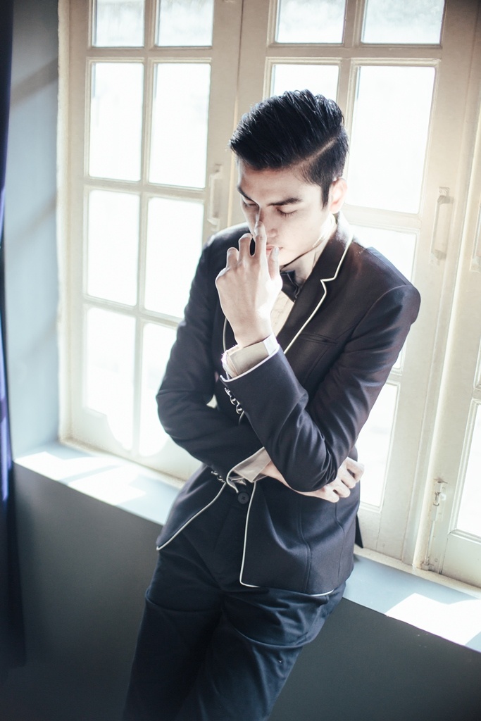 | Trong khi đó, Quang Đại Next Top lại khoác lên mình chiếc áo vest được may form dáng ôm nhưng không quá bó sát kết hợp với sơ mi trắng tạo nên sự lịch lãm và nam tính. |
