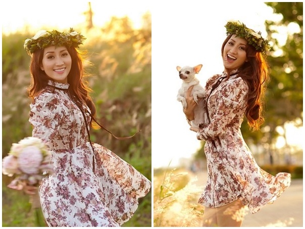 Ngoài những trang phục dạ tiệc lộng lẫy, gợi cảm, nữ kiện tướng dance sport còn sở hữu những chiếc đầm nữ tính mùa thu rất nhẹ nhàng, giúp đưa người đẹp 32 tuổi trở về tuổi thanh xuân.