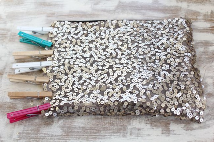 | Dù clutch sequin được bày bán khá phổ biến ở các shop thời trang, nhưng nếu bạn vẫn ngại sắm vì giá thành khá cao so với các loại clutch thông thường, hoặc bạn muốn một chiếc clutch sequin độc đáo cho riêng mình, hay bất kỳ lý do nào khác mà bạn không muốn bỏ tiền ra mua chúng, tốt nhất hãy tự tay mình may lấy vài chiếc clutch thật đặc biệt, thật sành điệu. Hầu như chỉ cần 10 phút cố gắng là bạn đã có ngay 1 chiếc clutch sequin như hình trên. |