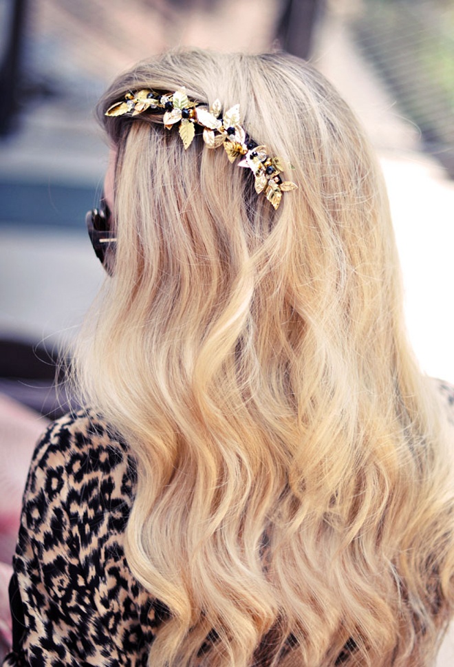| Bạn cũng có thể dùng cài tóc lá ánh kim này cho nhiều kiểu tóc khác nhau, từ tóc buộc lệch sang bên, tóc búi hoặc xoắn kiểu Pháp… Chắc chắn chiếc lược cài tóc độc đáo và rất “điệu” này sẽ khiến ai đó phải ngoái nhìn khi bạn dạo bước ngang qua… |