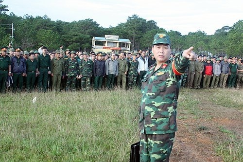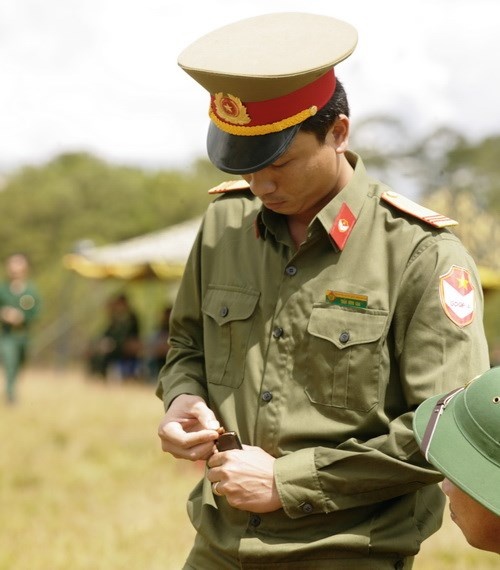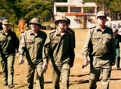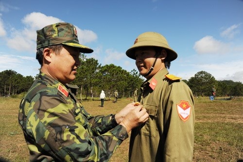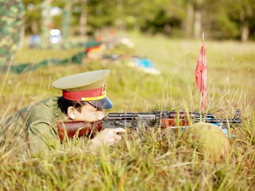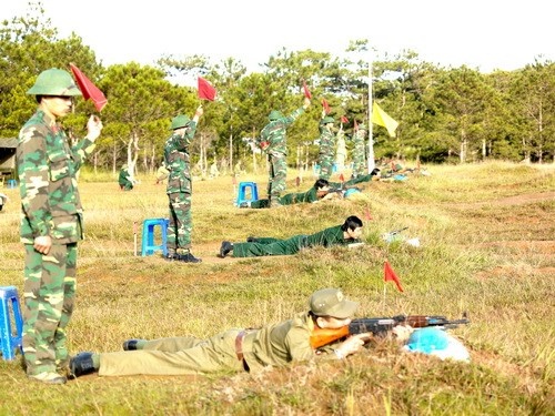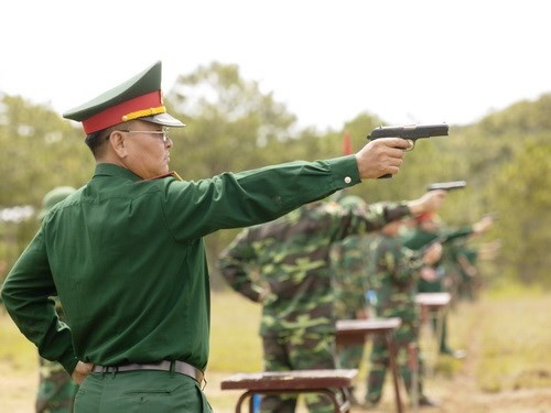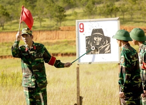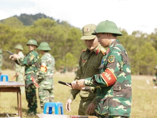 Sĩ quan của Vụ Giáo dục Quốc phòng (Bộ GD&ĐT) đang hướng dẫn nội dung thực hành bắn tại trường bắn của Học viện Lục quân (Đà Lạt, Lâm Đồng). |