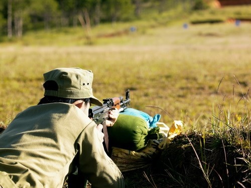 Tư thế ngồi bắn ở nội dung giao lưu bắn súng AK. |