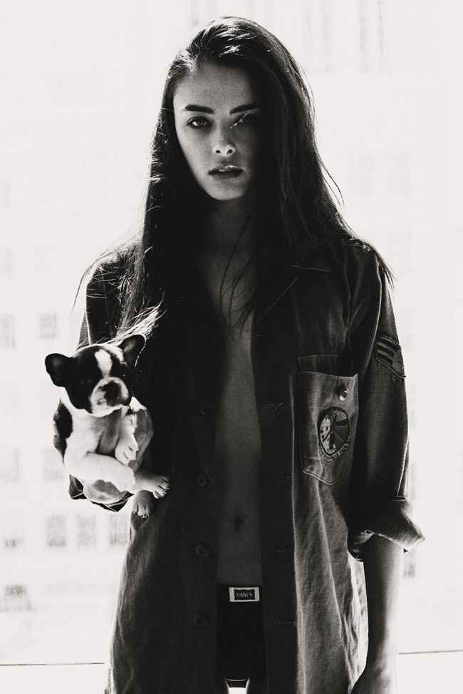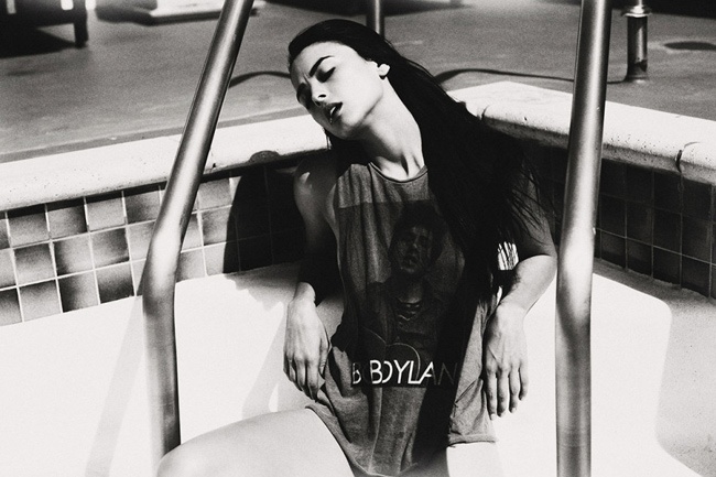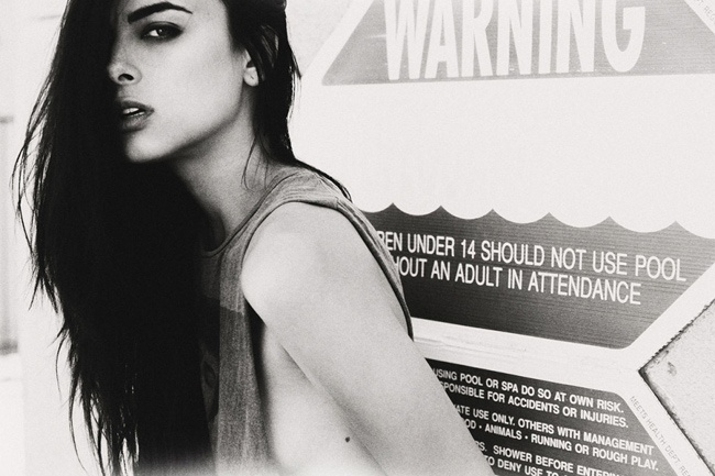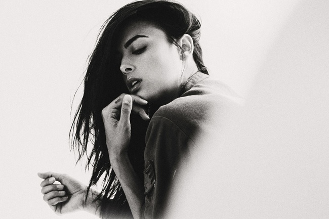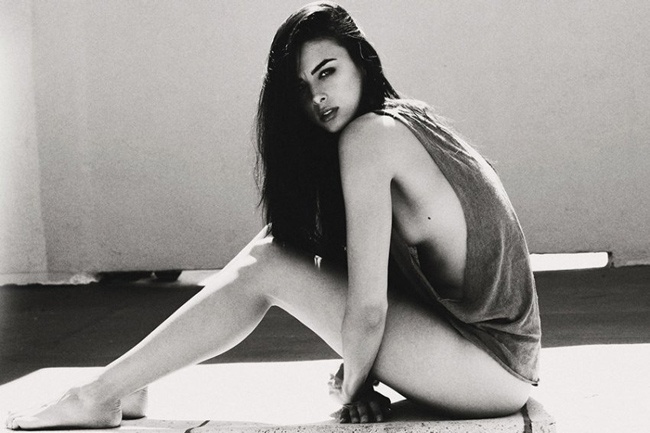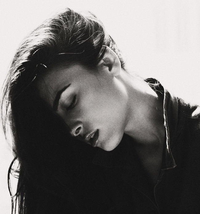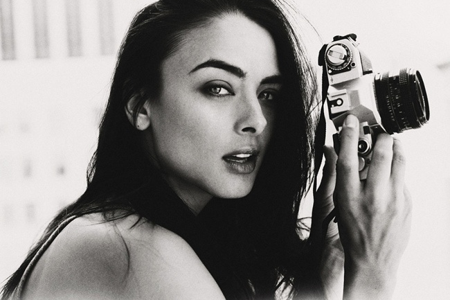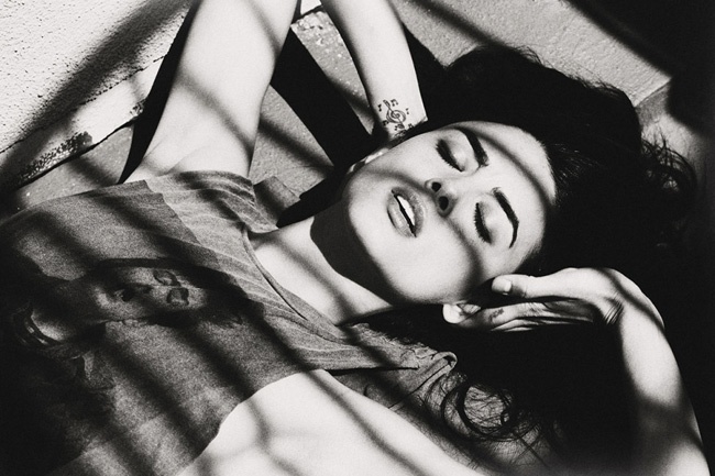 | Ảnh đen trắng dẫn dắt thị giác đi theo hai vùng đối lập, nhờ đó làm tăng vẻ sexy cho người mẫu và ý tưởng ảnh buông ngực trần. |