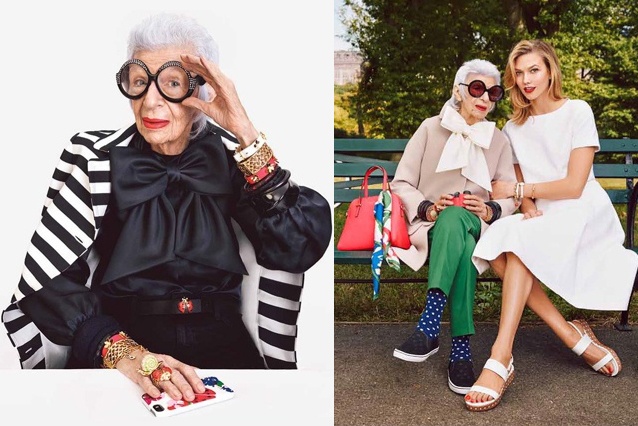 Doanh nhân, nhà thiết kế nội thất Iris Apfel, 94 tuổi, vẫn đầy cá tính và thời trang trong quảng cáo phụ kiện cho Kate Spade hồi đầu năm. Một lý do khiến người mẫu lớn tuổi được ưu ái trong các chiến dịch quảng cáo là vì dân số ở các quốc gia phát triển đang già đi và những người này nắm giữ một số lượng tài sản không hề nhỏ.