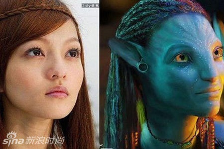 | Nữ diễn viên - ca sĩ Trương Thiều Hàm giống như khuôn đúc với nhân vật Neytiri của Avatar. |