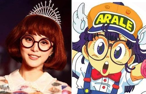 | Trong khi đó, với mắt kính tròn và mái tóc ngắn bồng bềnh, Phạm Băng Băng gợi người hâm mộ nhớ tới cô bé Arale dễ thương của Dr. Slump. |