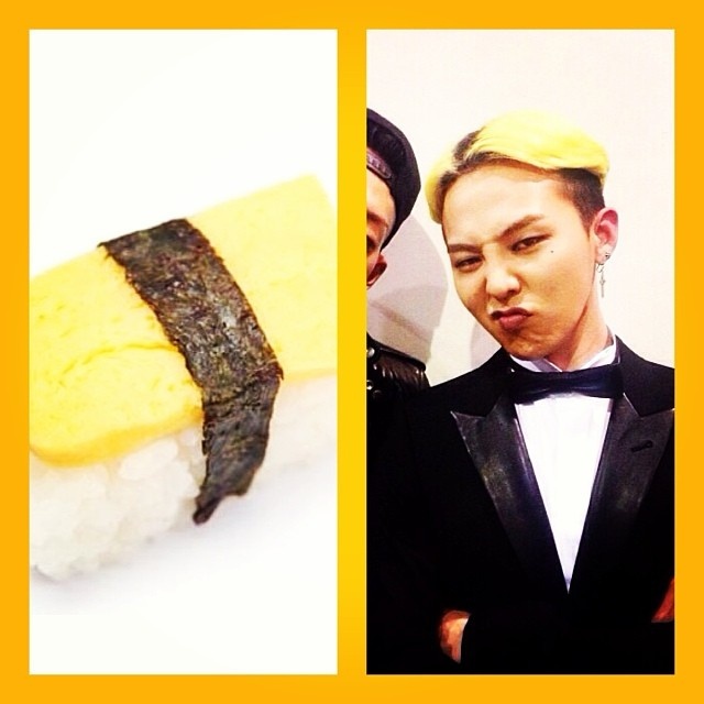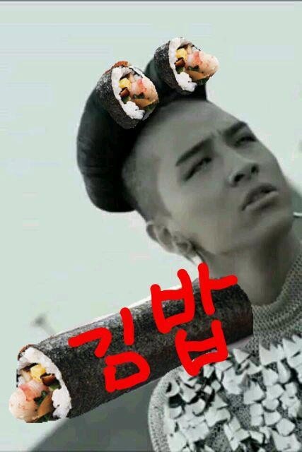 | Trước khi bức ảnh này được chế ra, ít ai có thể nghĩ được kiểu tóc của Tae Yang trong MV Monster lại giống món kimbab đến như vậy. |