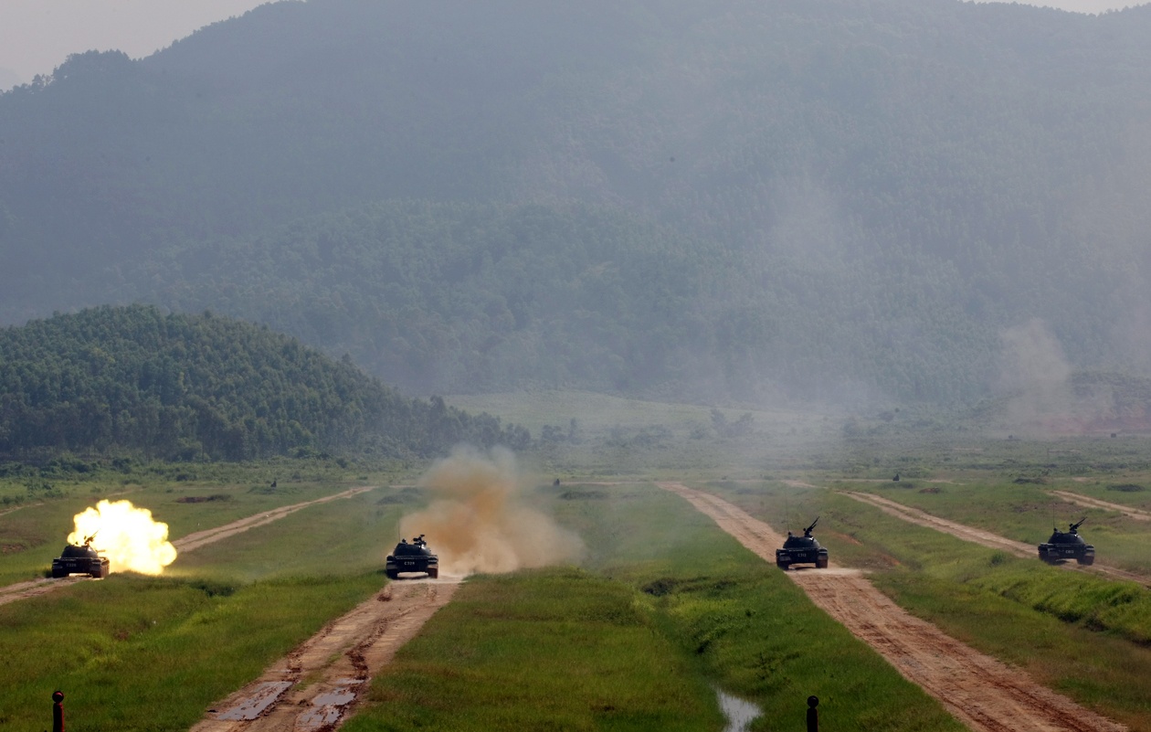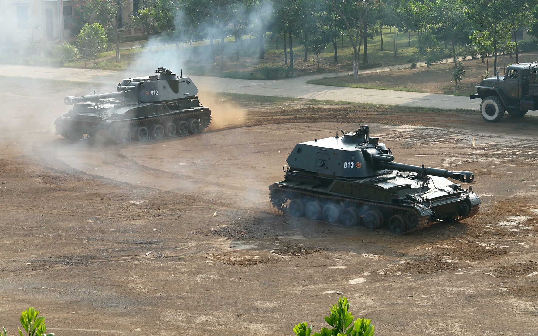 | Xe tăng tại Lữ đoàn 203 trong buổi huấn luyện. Đây là đơn vị đã thực hiện 4 cuộc hành quân “thần tốc” vào Nam, ra Bắc dài 7.000 km, tham gia chiến đấu trong các chiến dịch lớn như Khe Sanh, Đường 9 - Nam Lào, Quảng Trị, Huế, Đà Nẵng, đến Chiến dịch Hồ Chí Minh lịch sử. |